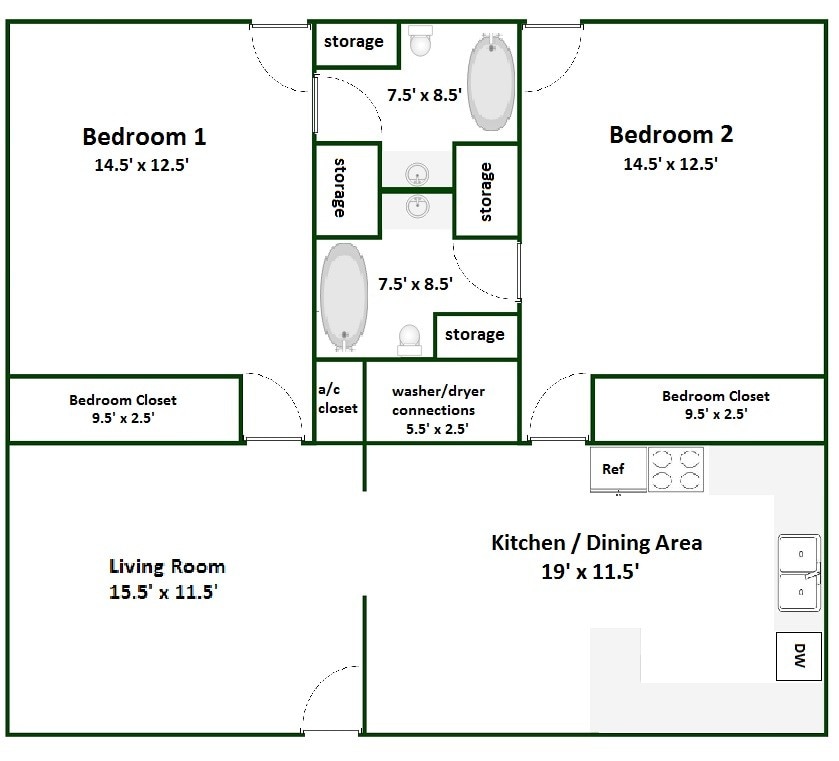 2 Beds, 1 Bath, 840 sq ftAvailable NowModel Gallery