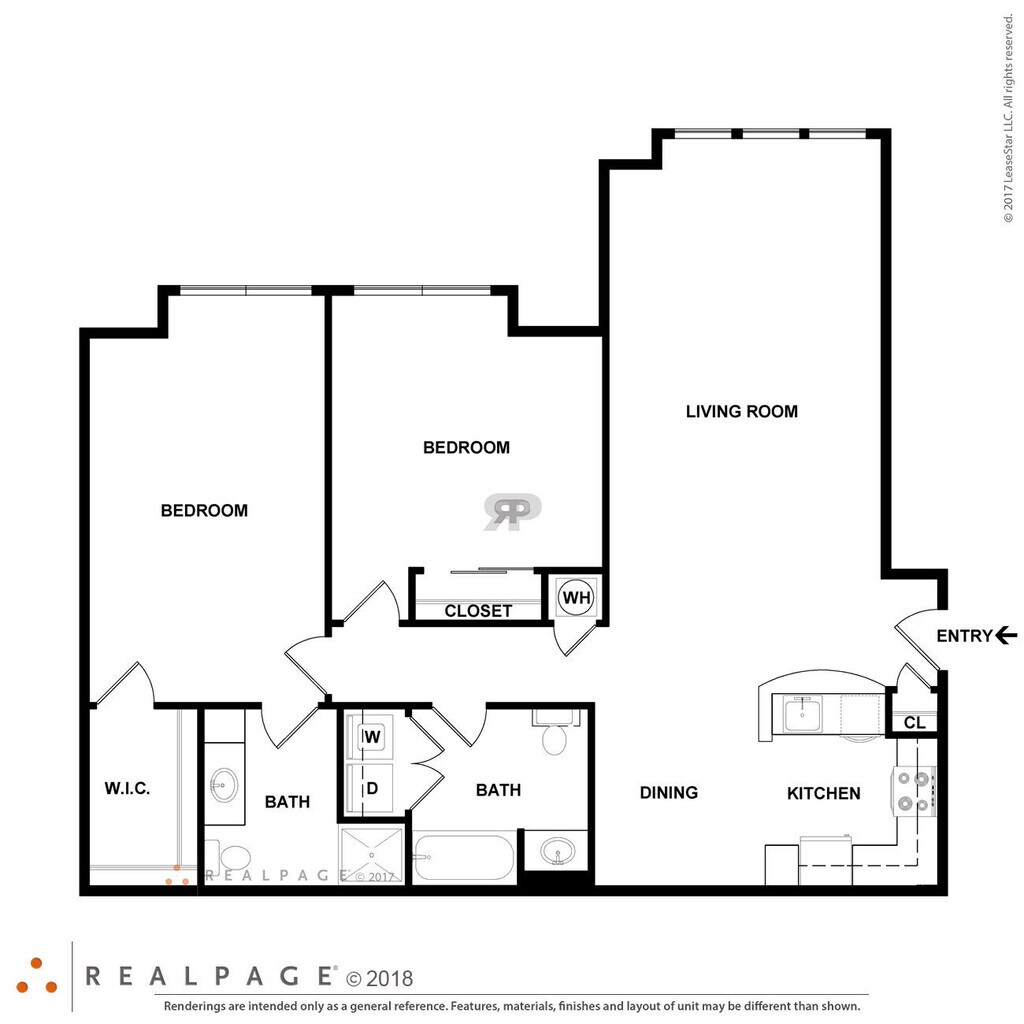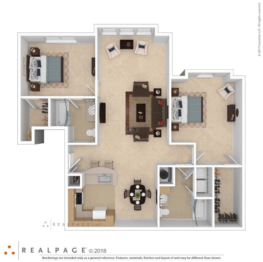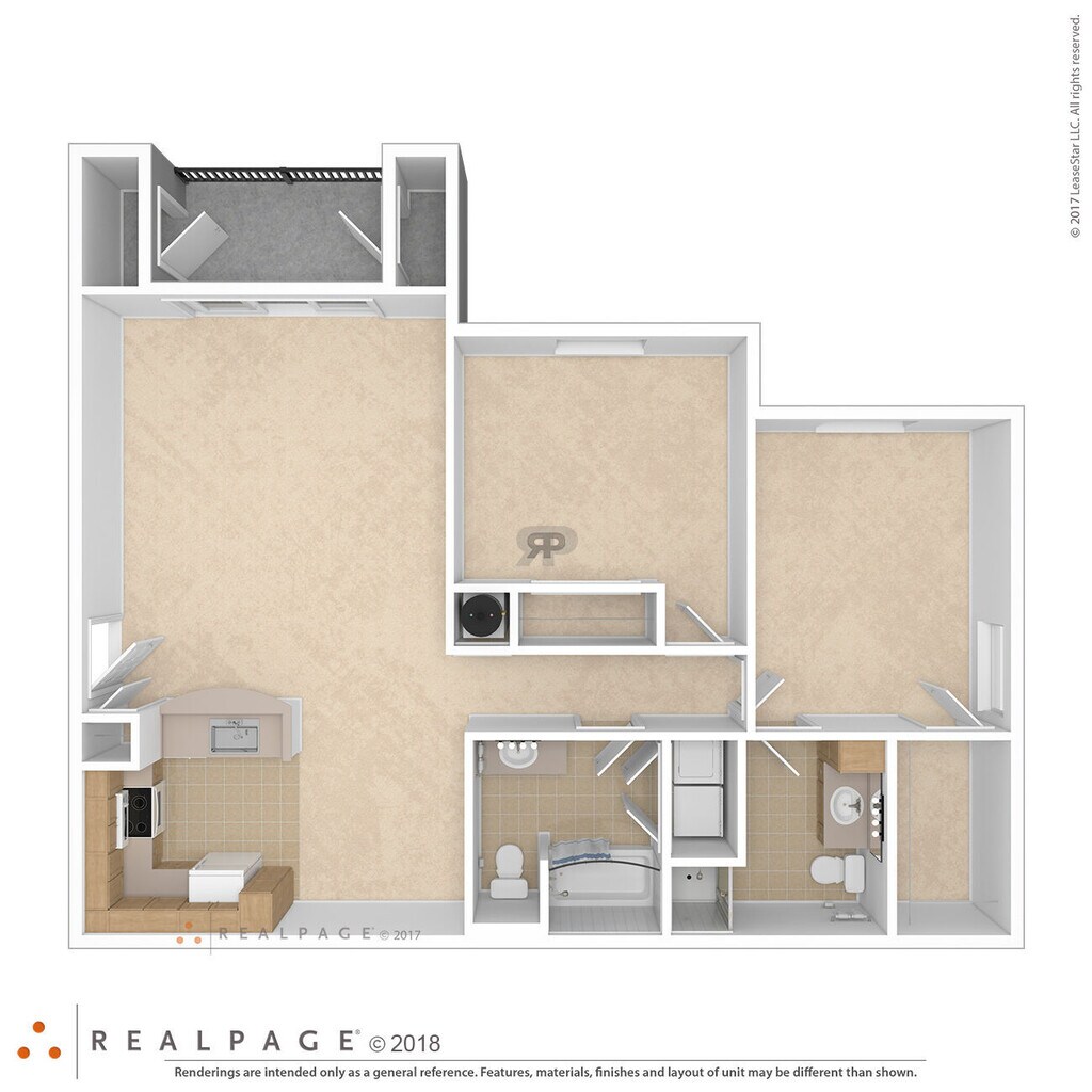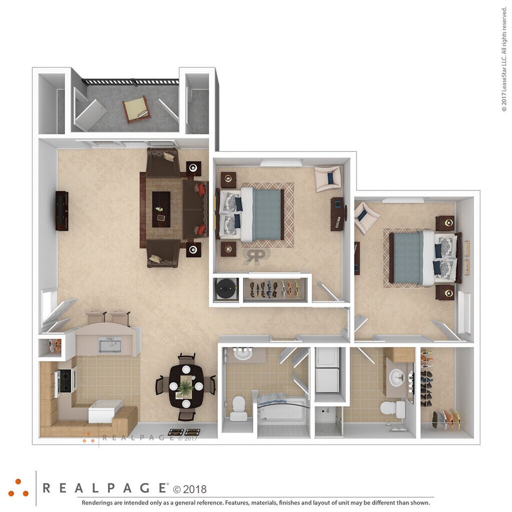 2 Beds, 2 Baths, 1107-1163 sq ftAvailable NowLargest 2 BedroomThis is the largest 2 Bedroom at this PropertyModel Gallery