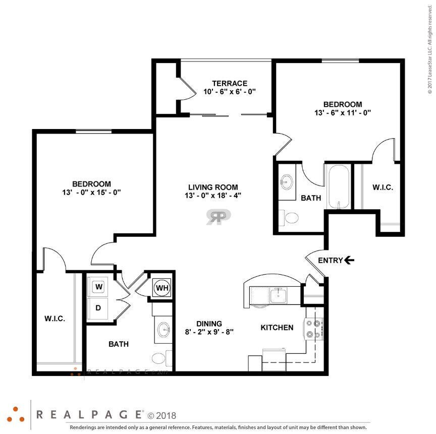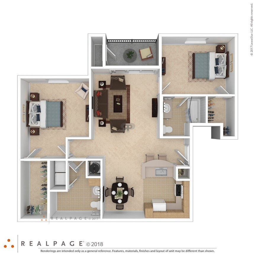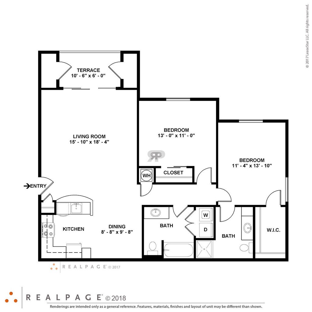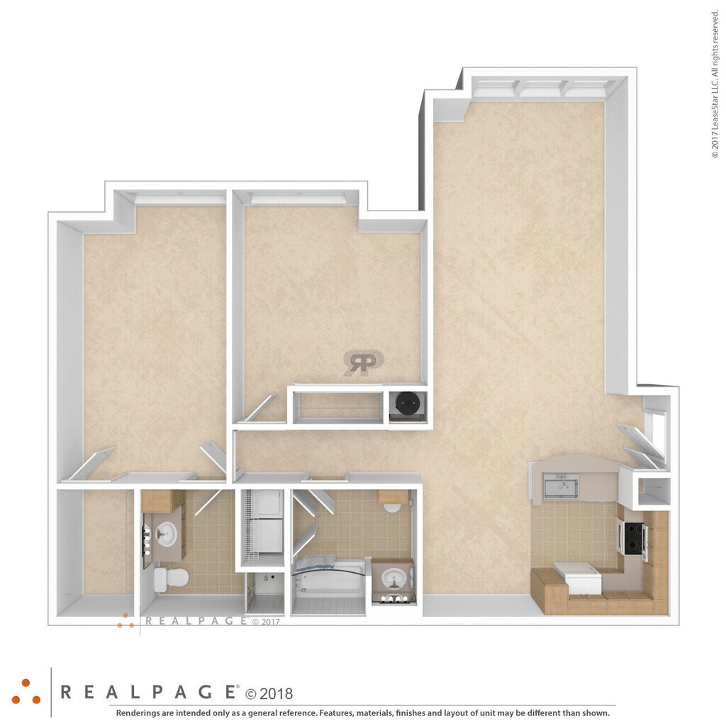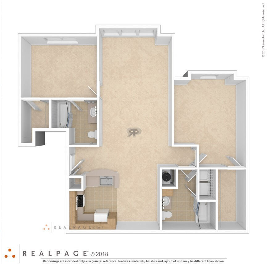 2 Beds, 2 Baths, 1107-1163 sq ftAvailable NowLargest 2 BedroomThis is the largest 2 Bedroom at this PropertyModel Gallery