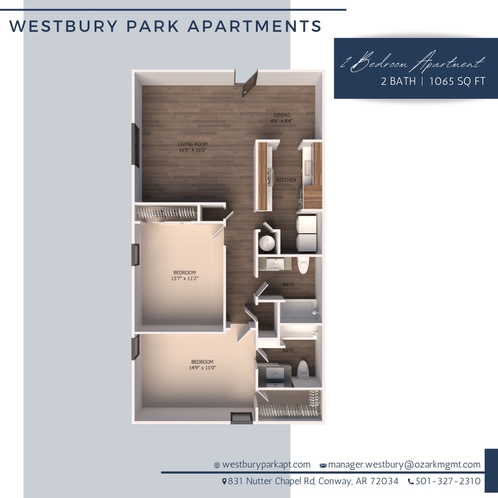 Westbury Park Apartments is located in the Conway Neighborhood and 72034 Zip code of Conway, AR. This community is professionally managed by Ozark Management