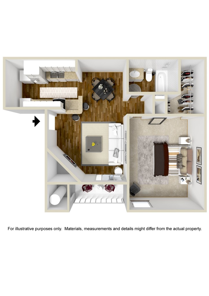 1 Bed, 1 Bath, 699 sq ftAvailable NowLargest 1 BedroomThis is the largest 1 Bedroom at this PropertyModel Gallery