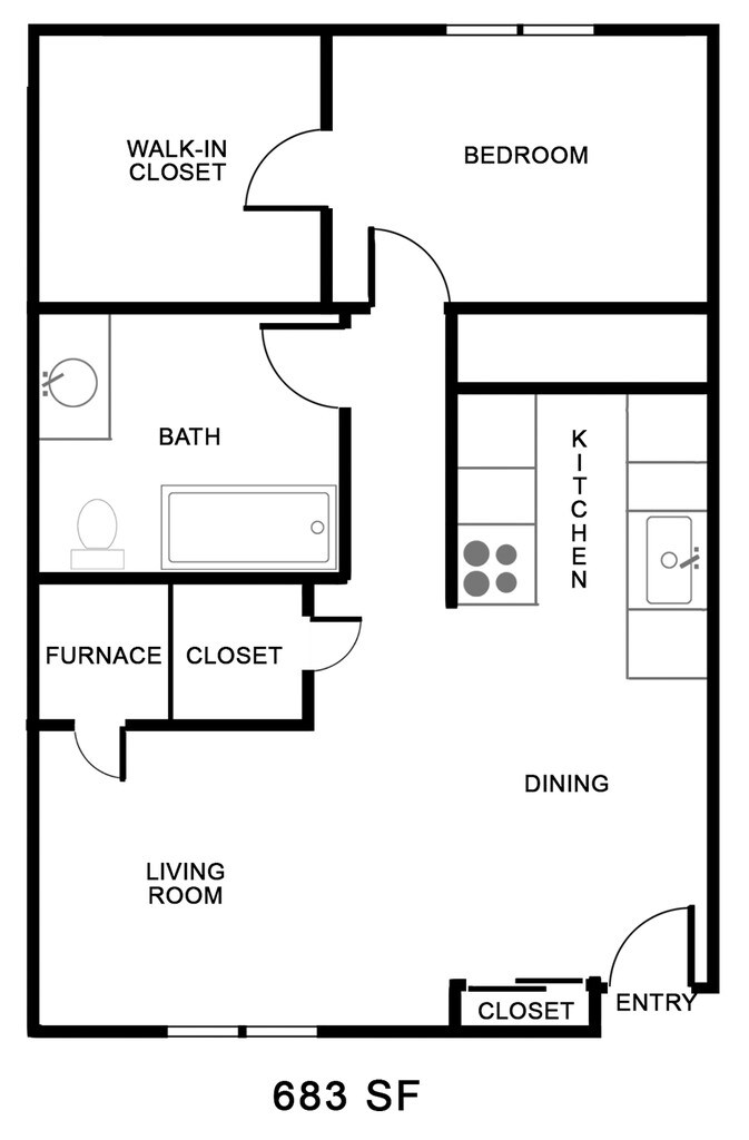 Apartment Model: 1 bedroom 6831 Bedroom, 1 Bath, 683-821 sq ftUnavailable1 bedroom 683 - Floorplan 1 2 Bedrooms