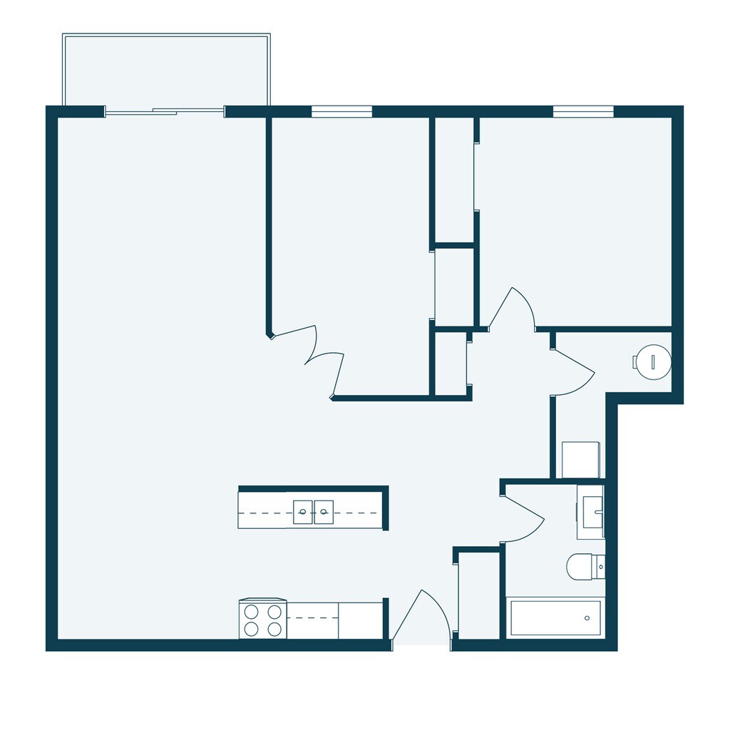 One Bedroom 11B - Floorplan 2 One Bedroom 11DB