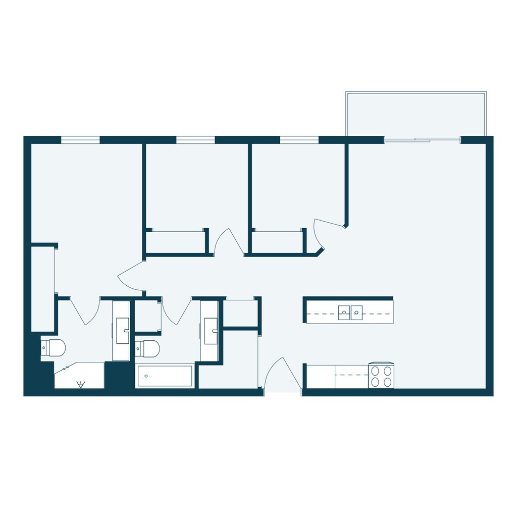 Two Bedroom 22A - Floorplan 2 3 Bedrooms