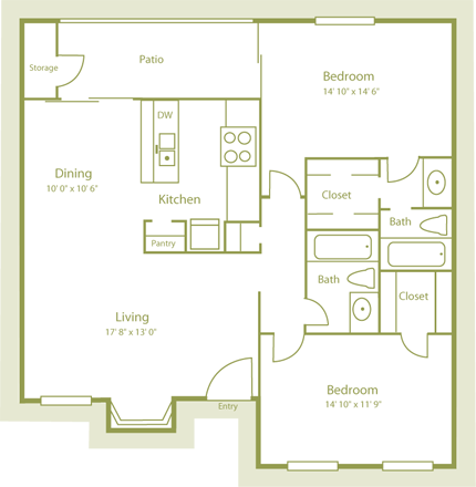 Apartment Model: Plan B12 Bedroom, 1 Bath, 800 sq ftAvailable December 6, 2025![]()