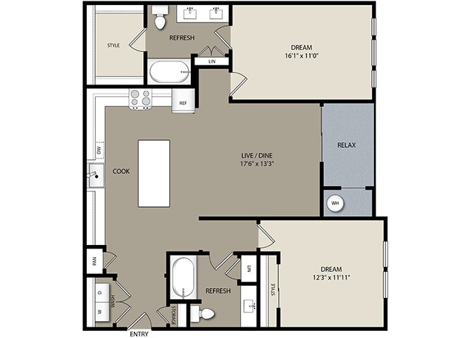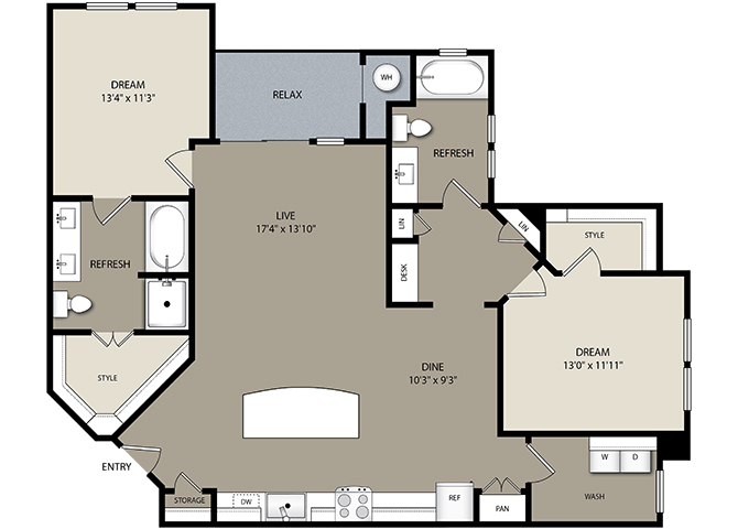 1 Bed, 1 Bath, 874 sq ftAvailable NowModel Gallery