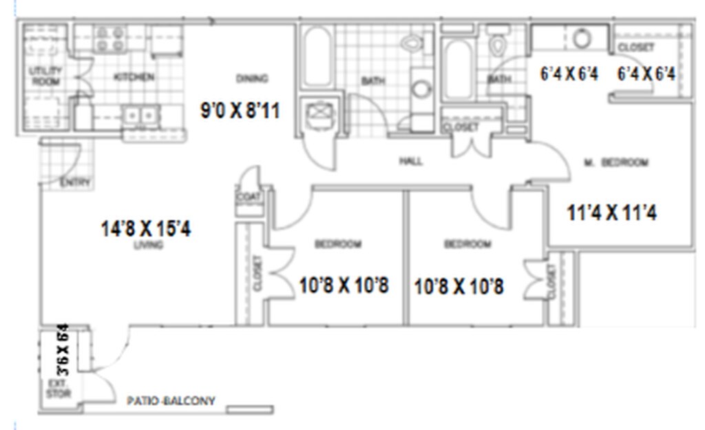 Apartment Model: 3 Bedroom3 Bedroom, 2 Bath, 1170 sq ftUnavailableFloorplansPhotos![]()