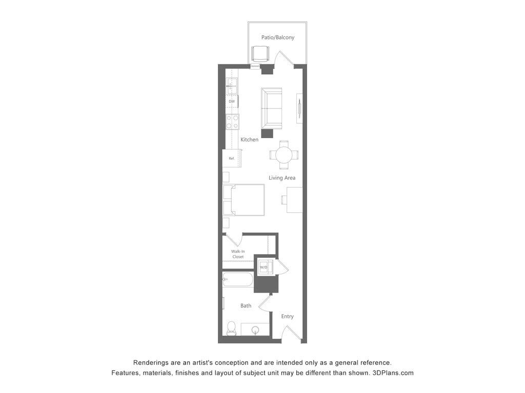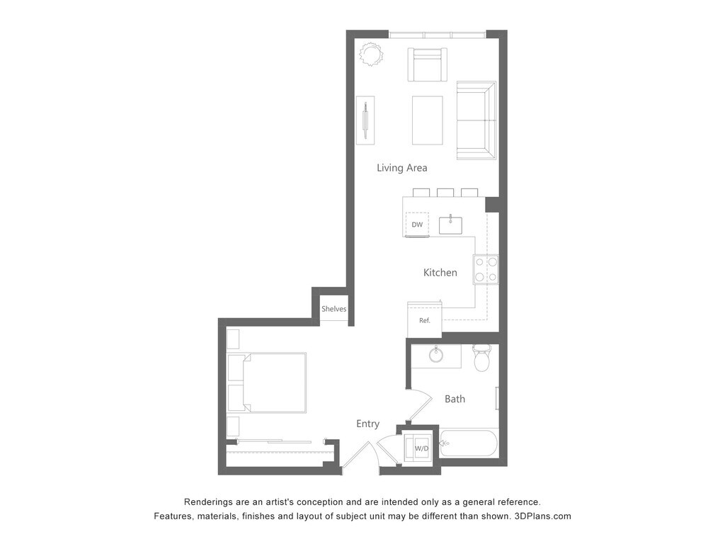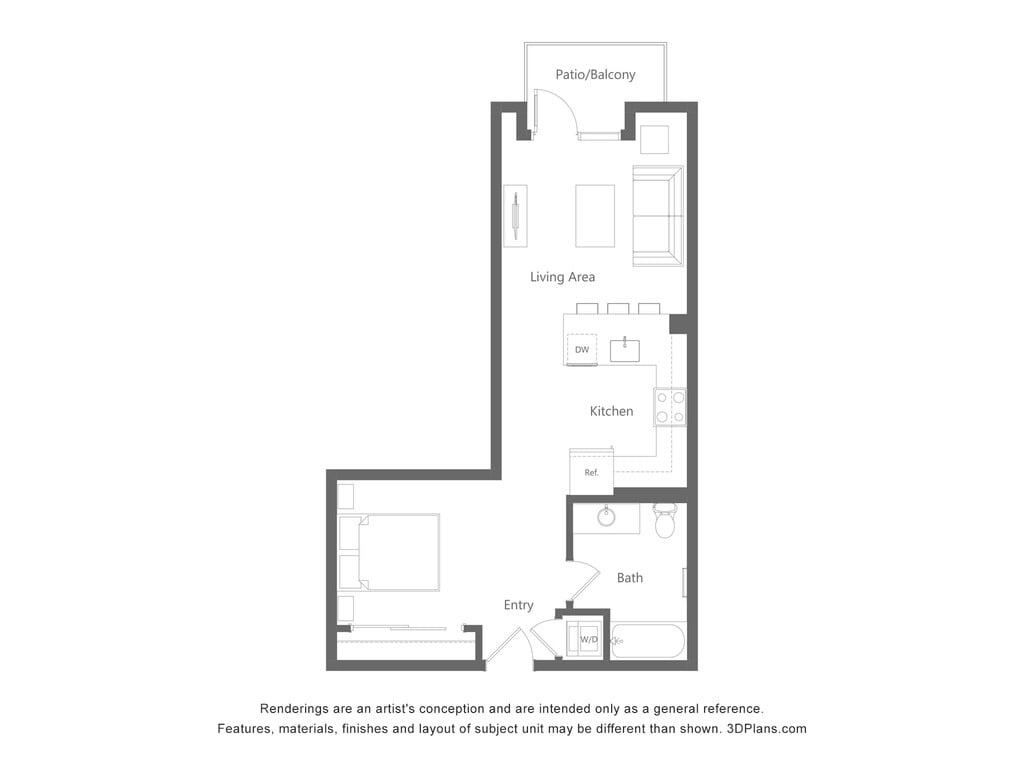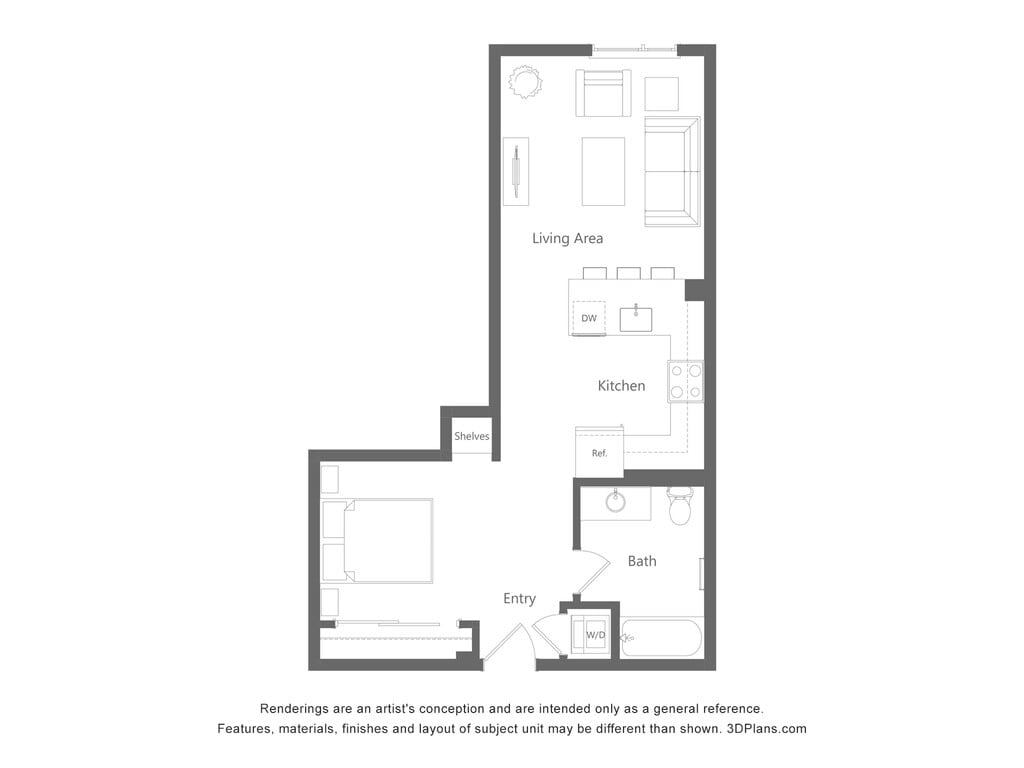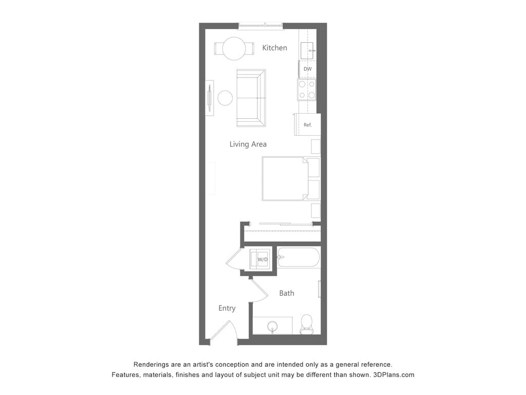 Studio, 1 Bath, 617 sq ftAvailable NowModel Gallery