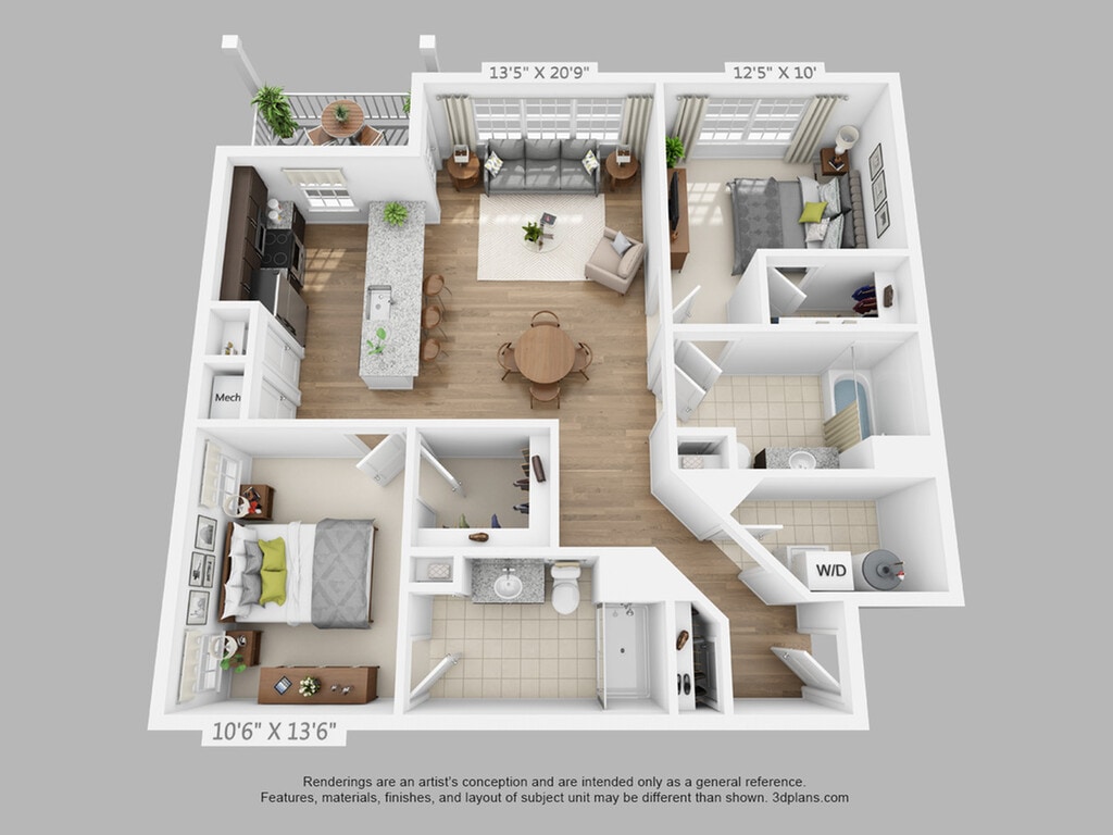 - 3 Bedrooms- 3-Bedroom 2.5-Bathroom Townhouse | 1,590 sqft- From $3,5163 Beds, 2.5 Baths, 1590 sq ftAvailable Dec 20- Model Gallery- Floorplans- Availability Details- Price - Availability Date - Unit - Sq Ft - Deposit - $3,516 - December 20, 2025 - THR-216 - 1590 - $700 - Unit THR-216 Amenities and Features- Features- Air Conditioning