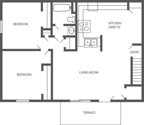 2 Bed, 1 Bath Lower - Floorplan 4 ![]()