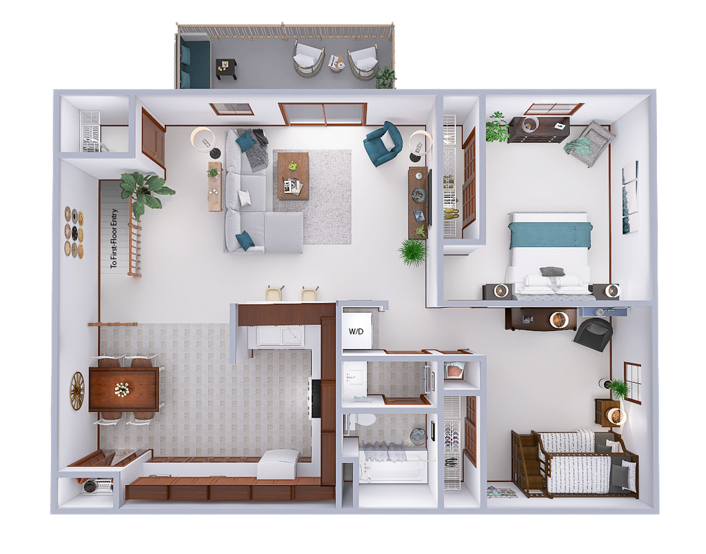 2 Bed, 1 Bath Lower - Floorplan 7 2 Bed, 1 Bath Upper