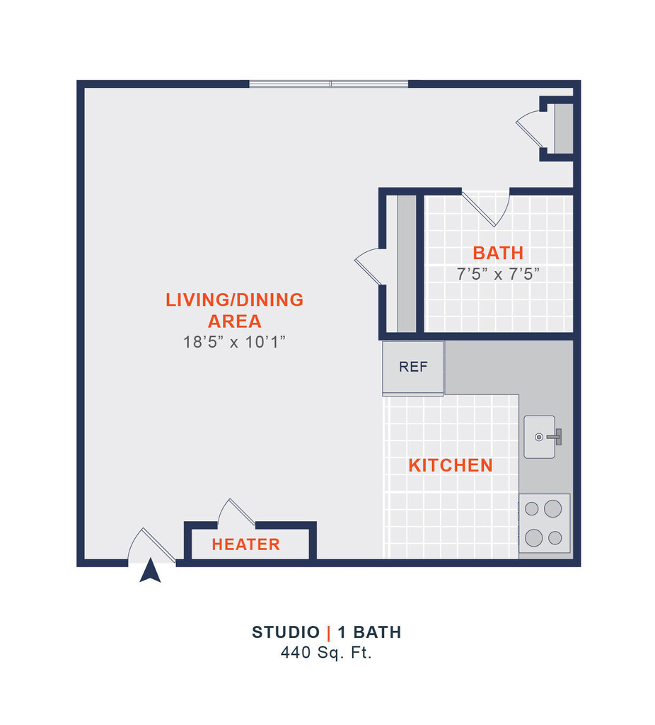Studio | 1 Bath - Floorplan 1 1 Bedroom