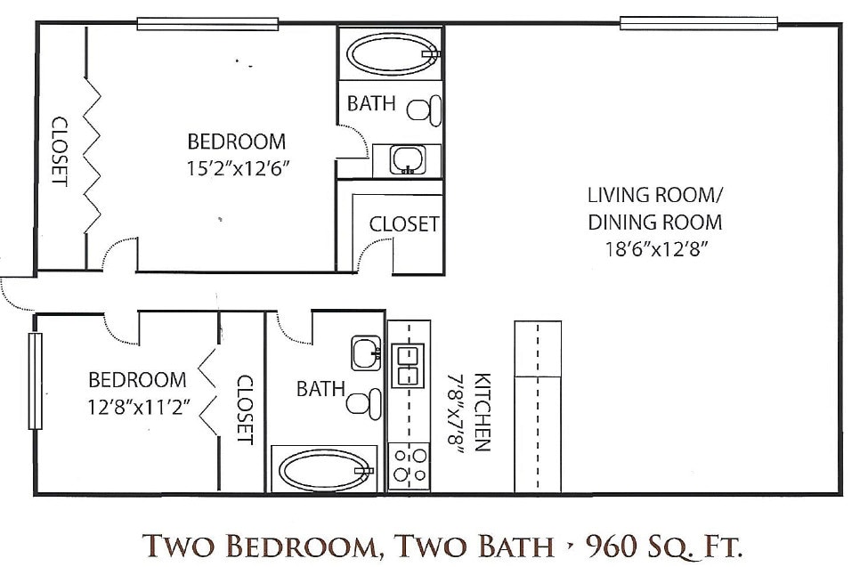 2 Beds, 2 Baths, 960 sq ftAvailable NowModel Gallery
