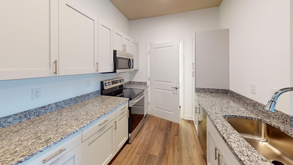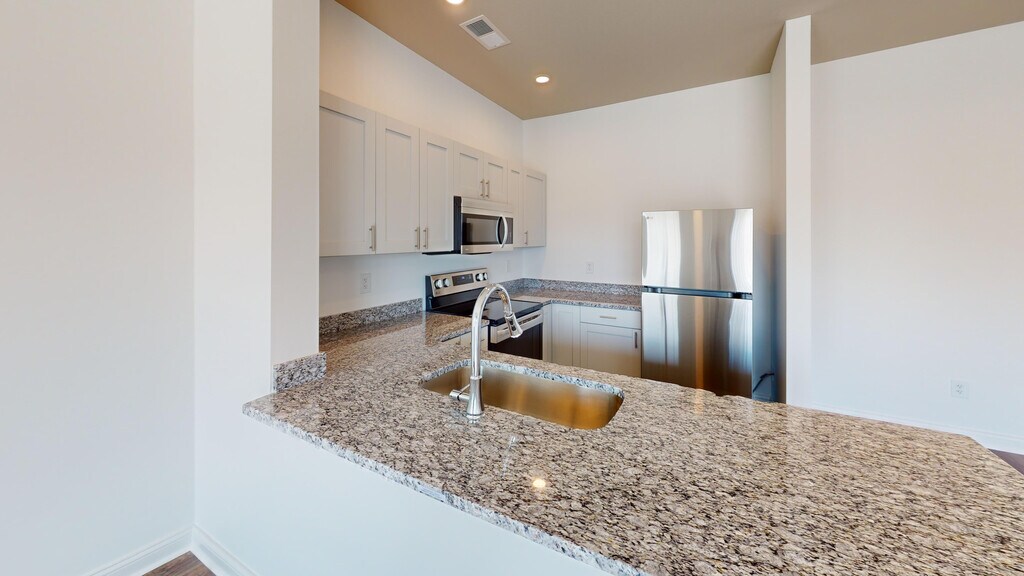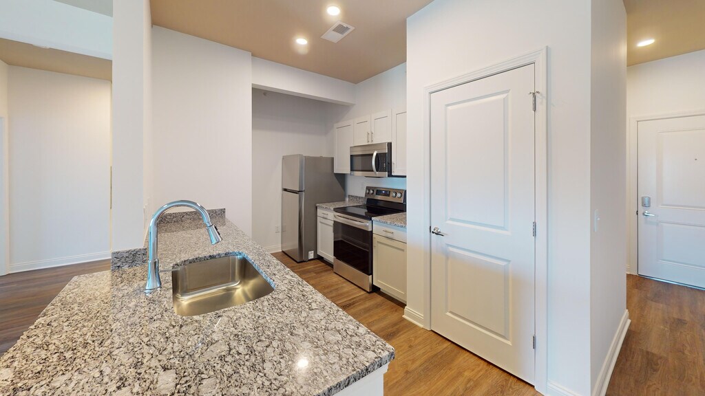 - Unit Description- The Carmichael is a 770 SF one-bedroom, one-bathroom luxury apartment. The home features a large kitchen with stainless steel appliances, in-unit laundry room, and a walk-in closet. - Model Rent and Fees- Model Price Range- $1,700 - $1,900