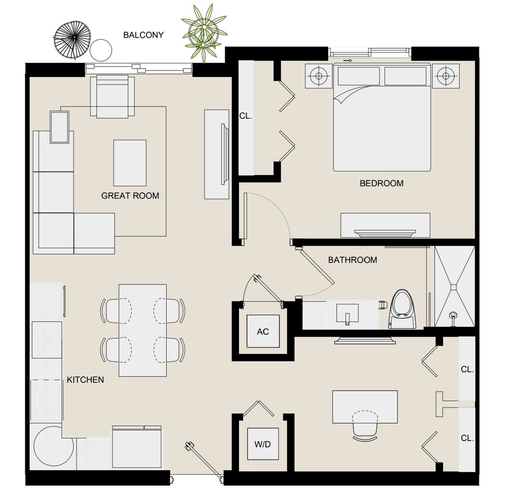 - 1 Bedroom- Floorplan A2- From $2,0601 Bed, 1 Bath, 744 sq ftAvailable Now- Model Gallery- Floorplans- Availability Details- Price - Availability Date - Unit - Sq Ft - Deposit - $2,060 - Available Now - 1307 - 744 - $300 - $2,174 - Available Now - 2510 - 744 - $300 - $2,197 - Available Now - 6410 - 744 - $300 - Model Amenities and Features- Features- Air Conditioning