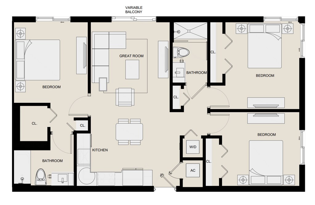 - 3 Bedrooms- Floorplan C1- From $2,4613 Beds, 2 Baths, 1120 sq ftAvailable Now- Model Gallery- Floorplans- Availability Details- Price - Availability Date - Unit - Sq Ft - Deposit - $2,461 - Available Now - 4307 - 1120 - $500 - $2,659 - Available Now - 1513 - 1120 - $500 - $2,725 - Available Now - 1213 - 1120 - $500 - Model Amenities and Features- Features- Air Conditioning