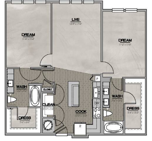 Apartment Model: B5Call For Rates2 Bedroom, 2 Bath, 1213 sq ftFloor plans are artist's rendering. All dimensions are approximate. Actual product and specifications may vary in dimension or detail. Not all features are available in every rental home. Prices and availability are subject to change. Base rent is based on monthly frequency. Additional fees may apply, such as but not limited to package delivery, trash, water, amenities, etc. Deposits vary. Please see a representative for details.