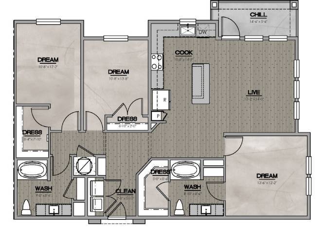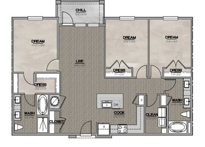 Apartment Model: B3Call For Rates2 Bedroom, 2 Bath, 1169 sq ftFloor plans are artist's rendering. All dimensions are approximate. Actual product and specifications may vary in dimension or detail. Not all features are available in every rental home. Prices and availability are subject to change. Base rent is based on monthly frequency. Additional fees may apply, such as but not limited to package delivery, trash, water, amenities, etc. Deposits vary. Please see a representative for details.