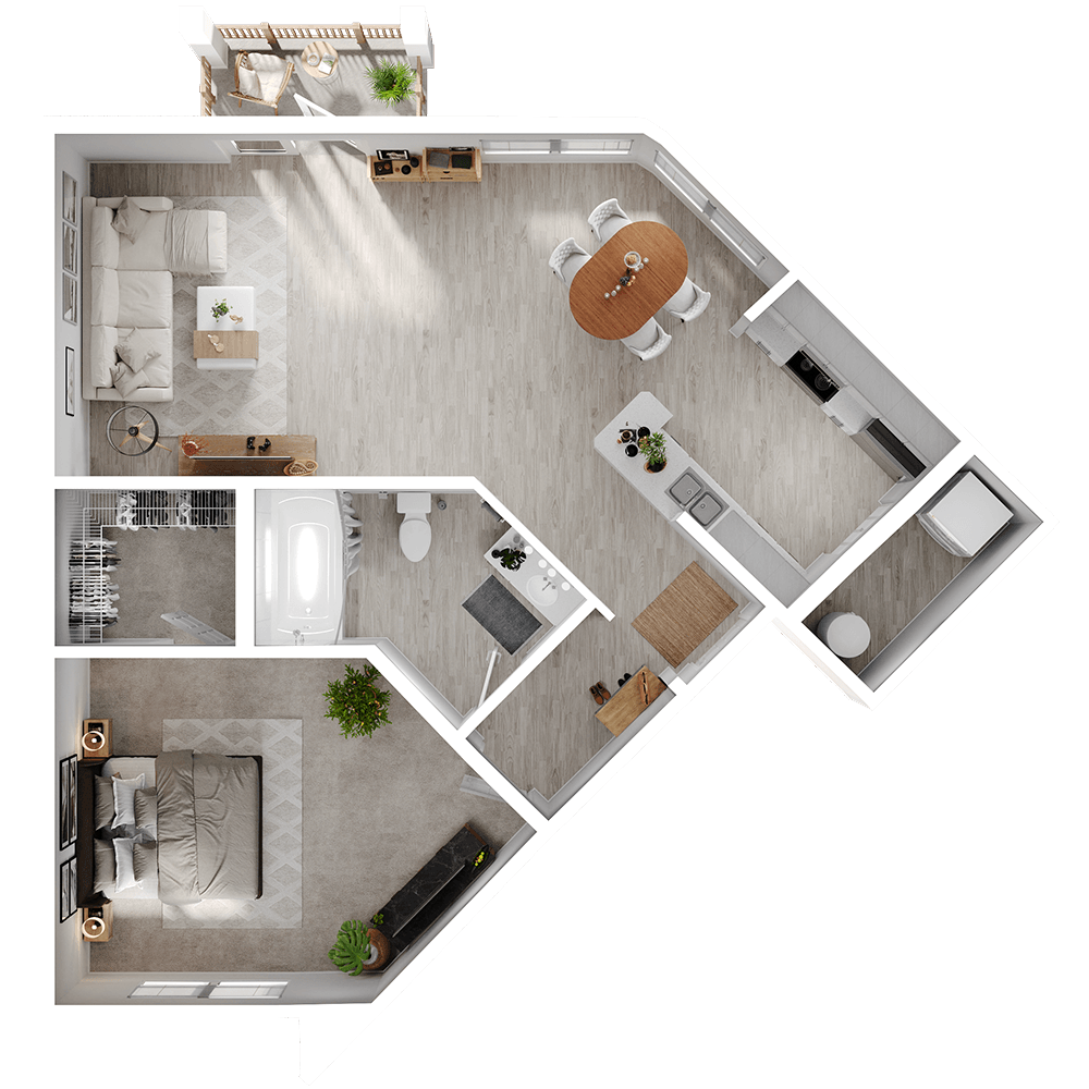 1 Bed, 1 Bath, 691 sq ftAvailable NowModel Gallery