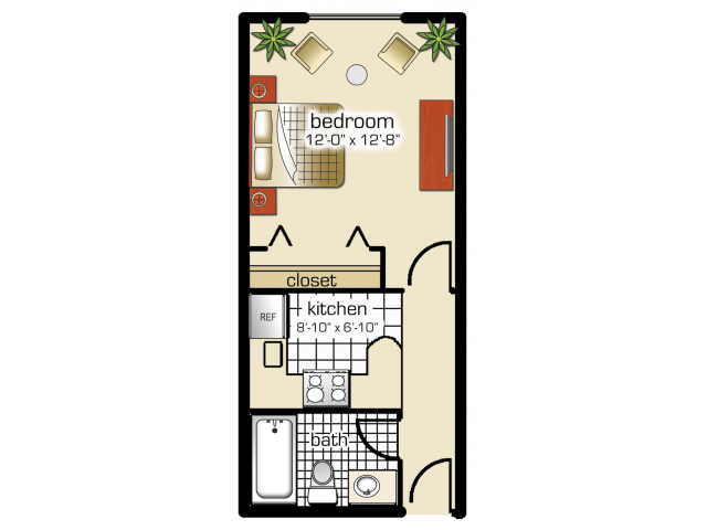 Apartment Model: StudioStudio, 1 Bath, 500 sq ftUnavailableStudio - Floorplan 1 1 Bedroom