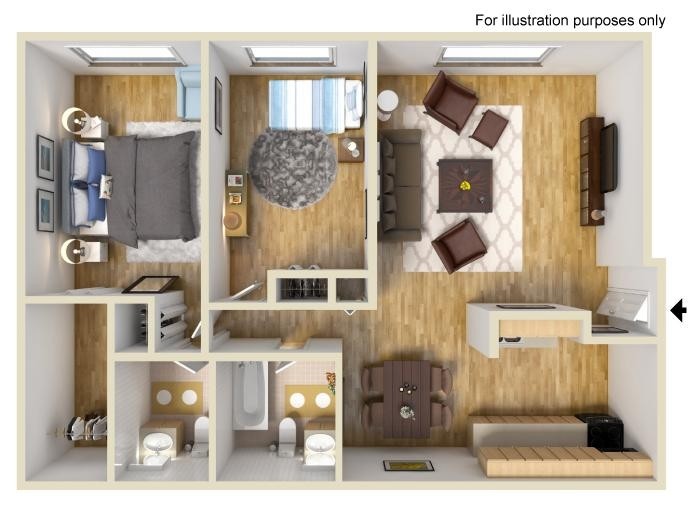 1 Bed, 1 Bath, 672 sq ftModel Gallery