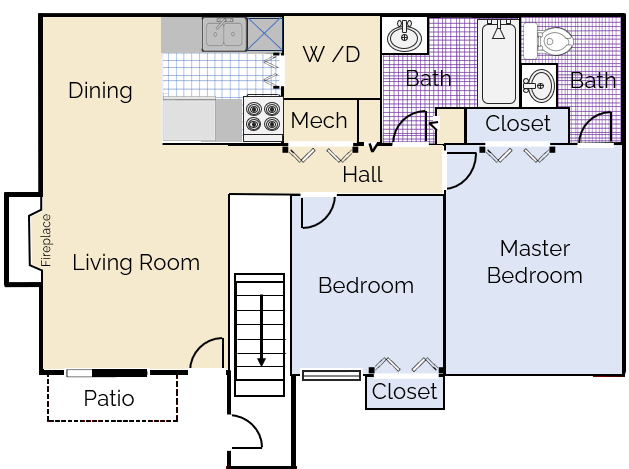 2 bedroom 1.5 bath - Floorplan 1 ![]()