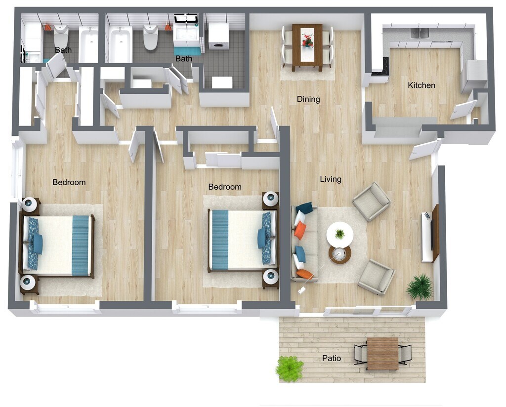 2 Beds, 2 Baths, 1060 sq ftAvailable NowAvailability Details