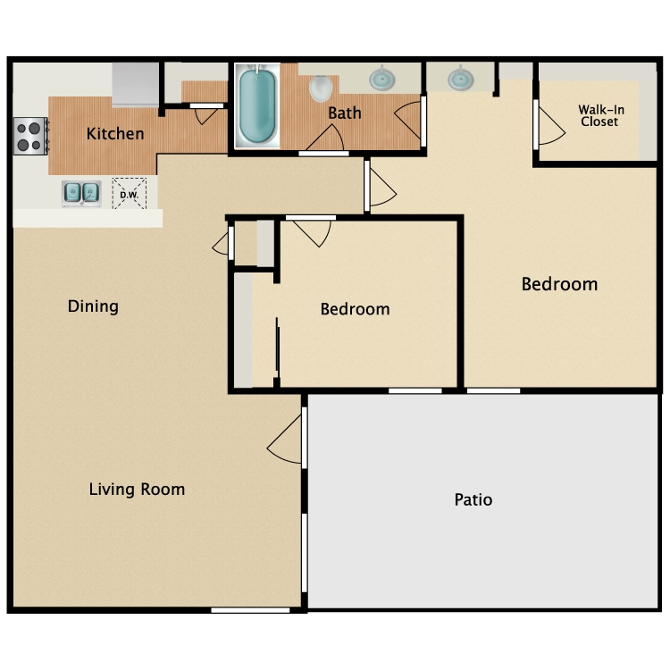 2 Beds, 1 Bath, 960 sq ftAvailable NowModel Gallery