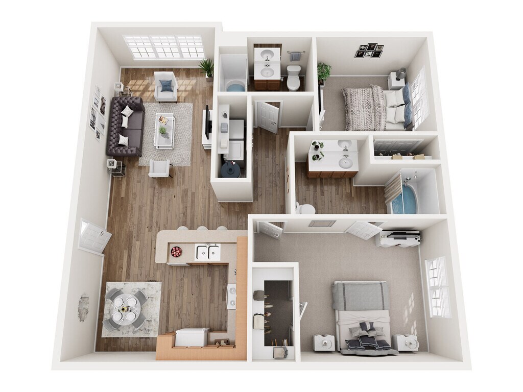 2 Beds, 2 Baths, 1067 sq ftAvailable NowModel Gallery