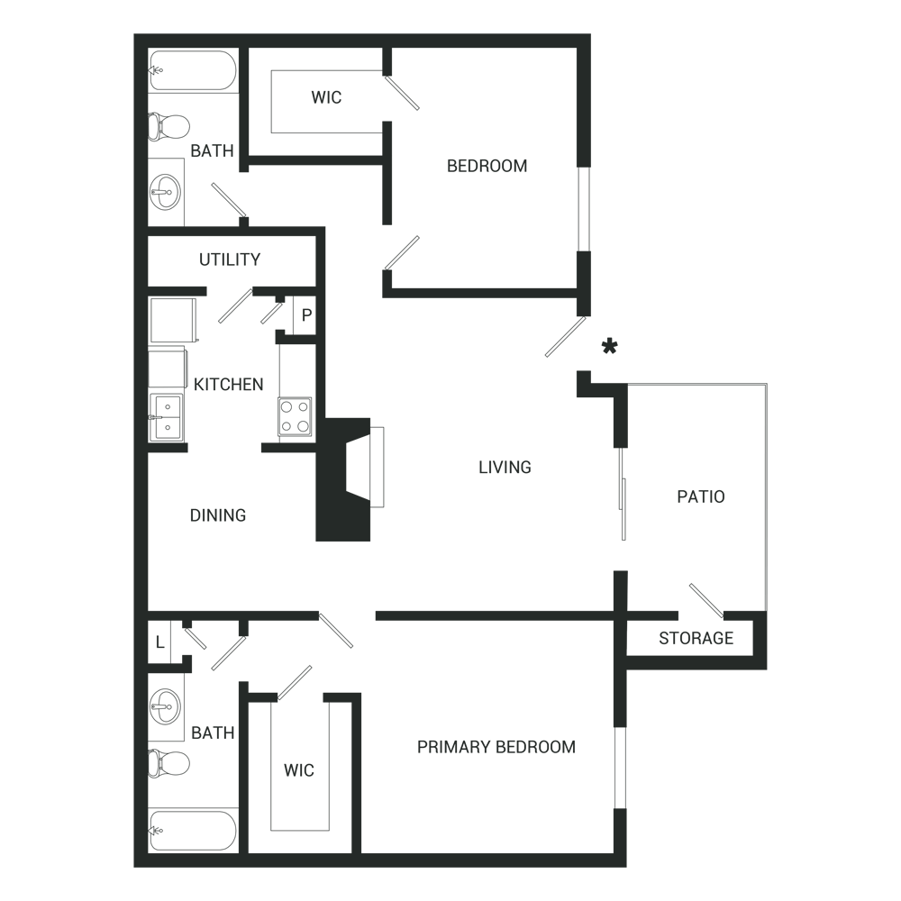 2 Beds, 2 Baths, 1079 sq ftLargest 2 BedroomThis is the largest 2 Bedroom at this PropertyModel Gallery