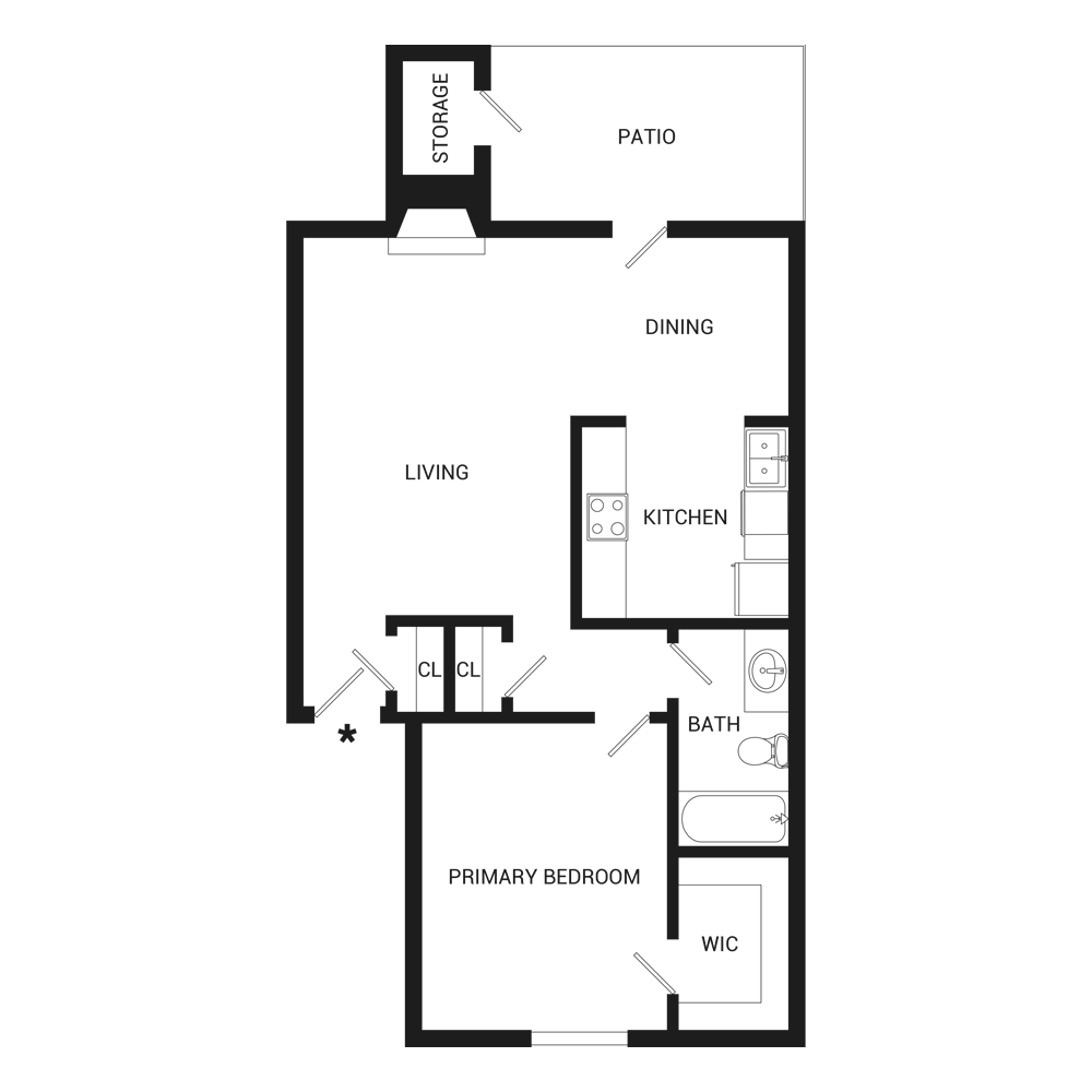 Apartment Model: A1Call For Rates1 Bedroom, 1 Bath, 545 sq ftUnavailableFloor plans are artist's rendering. All dimensions are approximate. Actual product and specifications may vary in dimension or detail. Not all features are available in every rental home. Please see a representative for details.