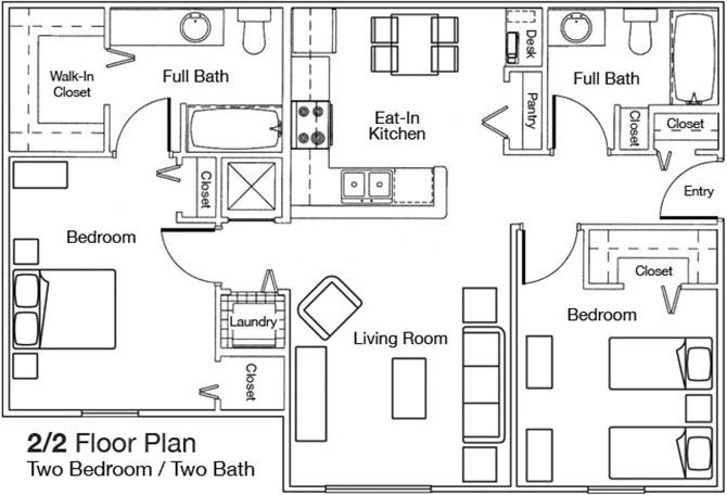 Apartment Model: 2x22 Bedroom, 2 Bath, 926 sq ftUnavailable2x2 - Floorplan 1 3 Bedrooms