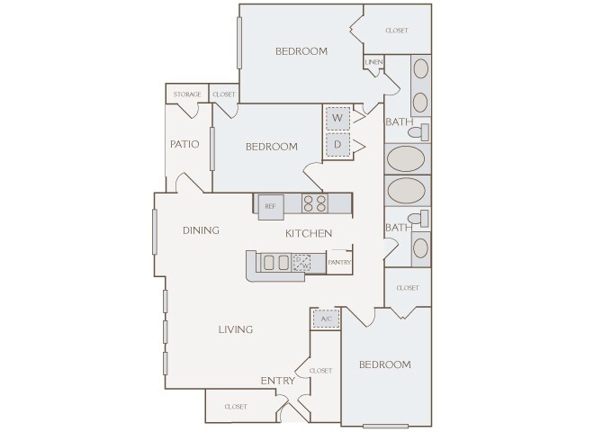 - 3 Bedrooms- Floorplan C2- From $2,0003 Beds, 2 Baths, 1480 sq ftAvailable Now- Model Gallery- Floorplans- Availability Details- Price - Availability Date - Unit - Sq Ft - $2,000 - Available Now - 0521 - 1480 - Unit 0521 Amenities and Features- Features- Ceiling Fans