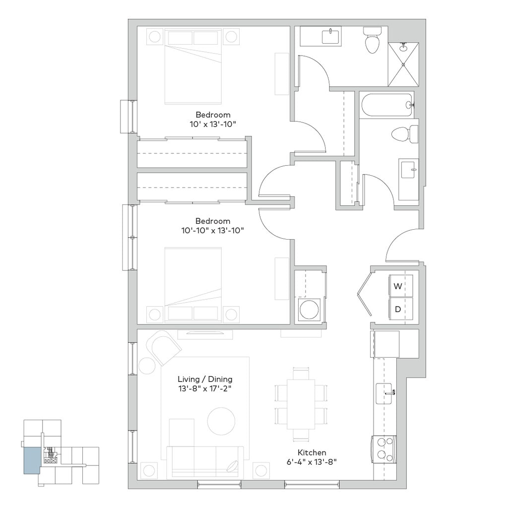 2 Beds, 2 Baths, 1111 sq ftAvailable NowModel Gallery