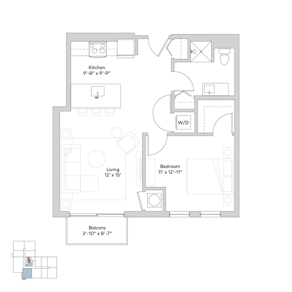1 Bed, 1 Bath, 711 sq ftModel Gallery