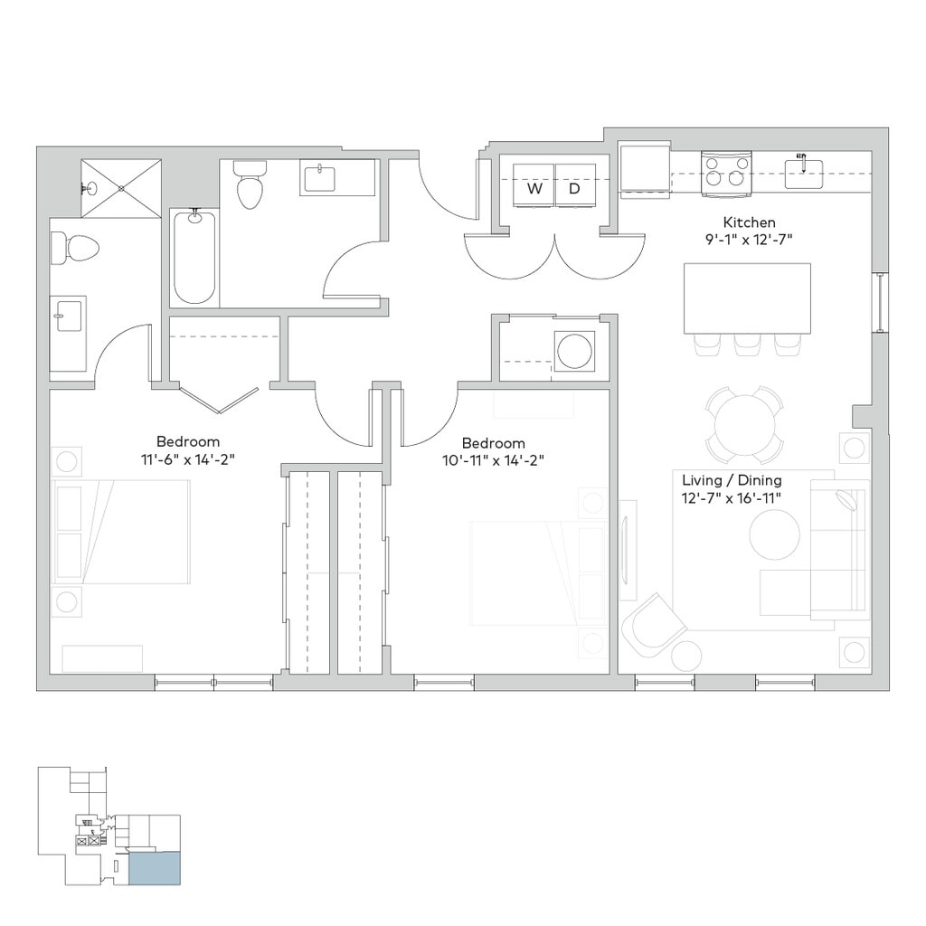 2 Beds, 2 Baths, 1143 sq ftLargest 2 BedroomThis is the largest 2 Bedroom at this PropertyModel Gallery