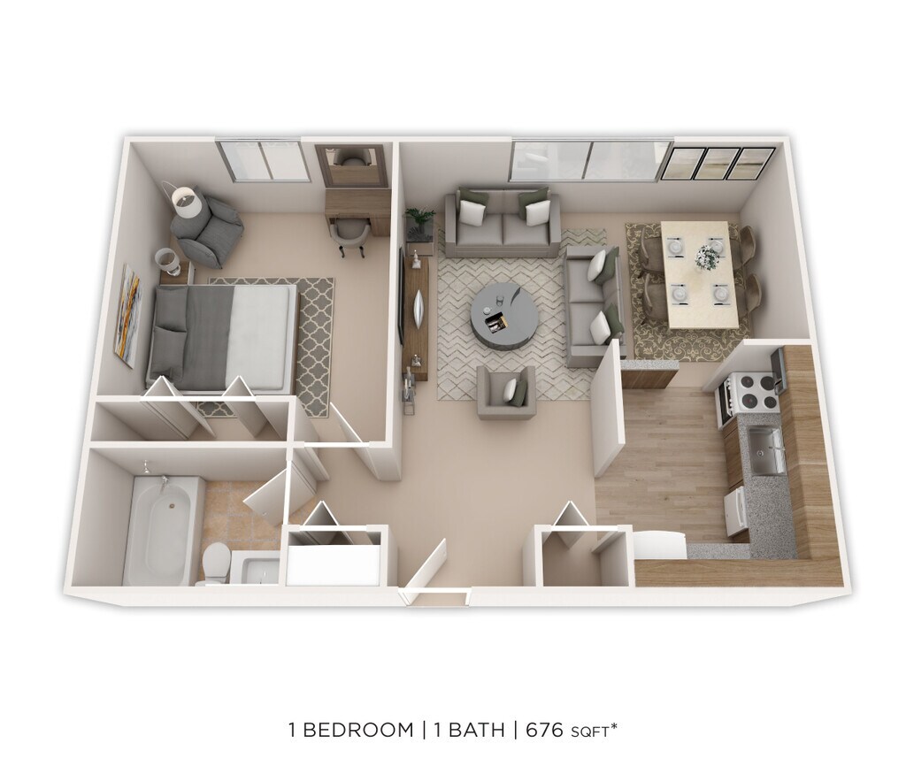Apartment Model: One Bedroom- 676 sqftFrom $1,3201 Bedroom, 1 Bath, 676 sq ftAvailable November 20, 2025![]()