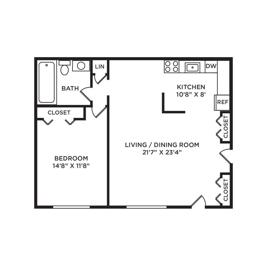 One Bedroom- 697 sqft - Floorplan 2 Apartment Unit: 1-326Apartment Model: One Bedroom- 697 sqft$1,3401 Bedroom, 1 Bath, 697 sq ftAvailable November 10, 2025One Bedroom- 676 sqft