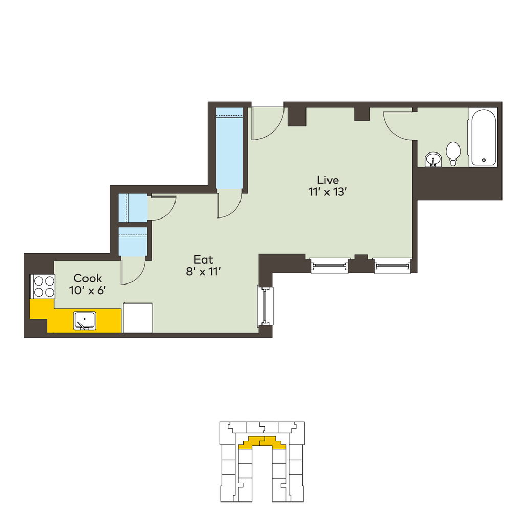 Apartment Model: 301w-0bfFrom $825Studio, 1 Bath, 454 sq ftAvailable Now301w-0bf - Floorplan 1 301w-0bc_a