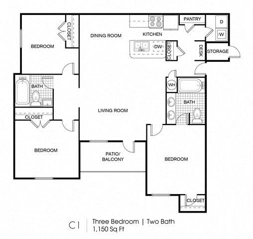 3 Beds, 2 Baths, 1150 sq ftModel Gallery