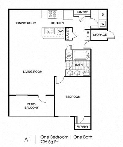 1 Bed, 1 Bath, 796 sq ftAvailable NowModel Gallery