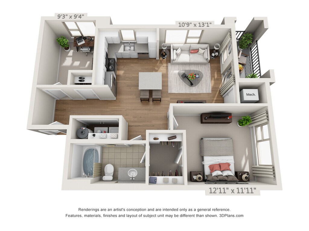 1-Bedroom 1-Bathroom w/ Den | 820 sqft - Floorplan 4 Apartment Unit: 3C-14Apartment Model: 1-Bedroom 1-Bathroom w/ Den | 820 sqftFrom $1,8401 Bedroom, 1 Bath, 820 sq ftAvailable February 5, 20262 Bedrooms