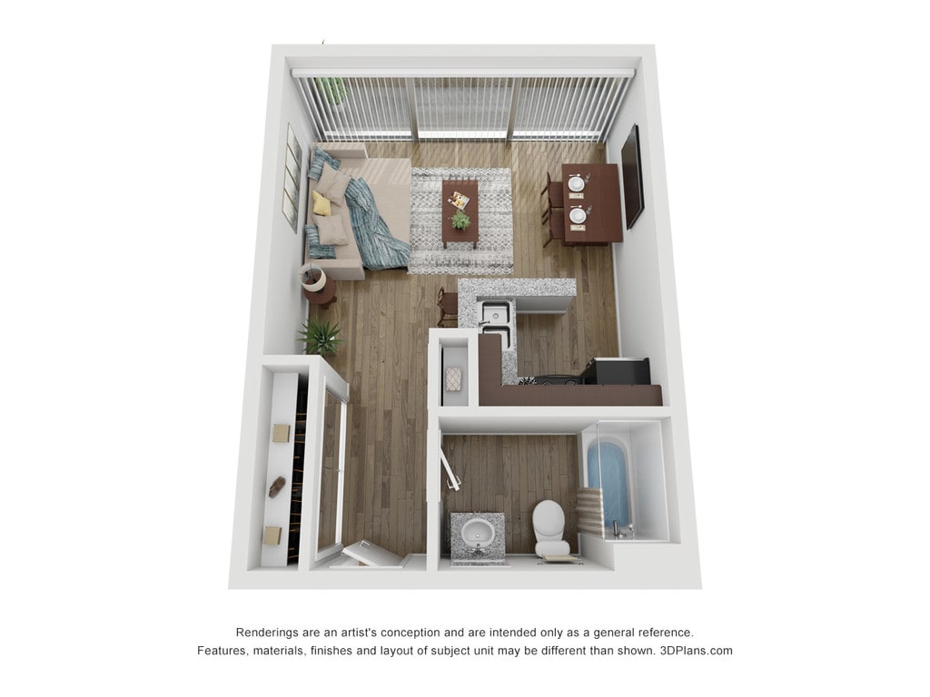 Studio, 1 Bath, 405 sq ftAvailable NowModel Gallery
