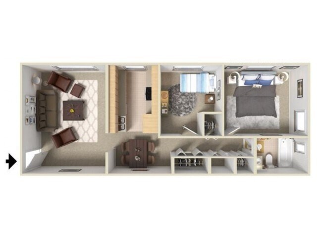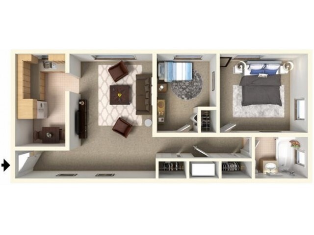 Apartment Model: DFrom $7701 Bedroom, 1 Bath, 520 sq ftUnavailableD - Floorplan 1 2 Bedrooms