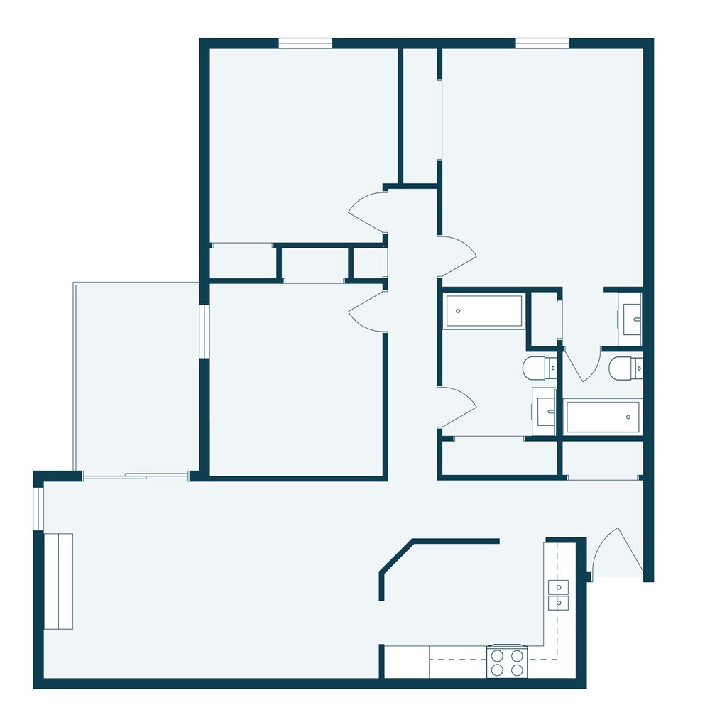 Three Bedroom 32A - Floorplan 2 Apartment Unit: 10Apartment Model: Three Bedroom 32A$1,2303 Bedroom, 2 Bath, 1200 sq ftAvailable Now