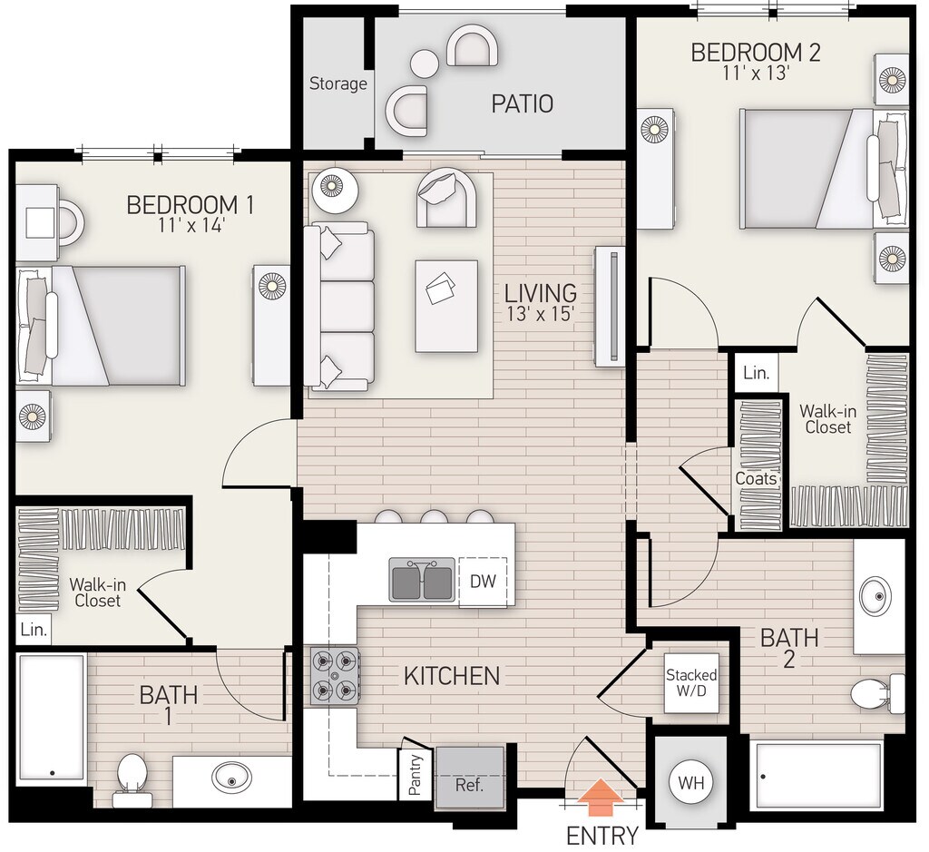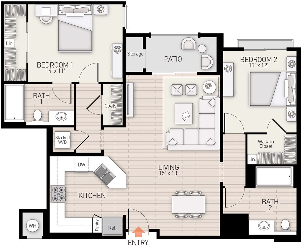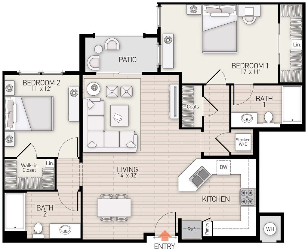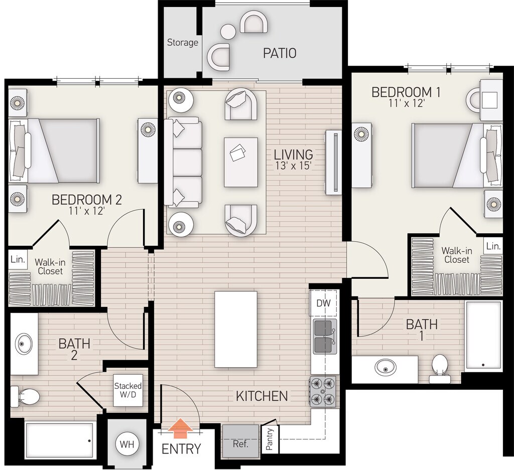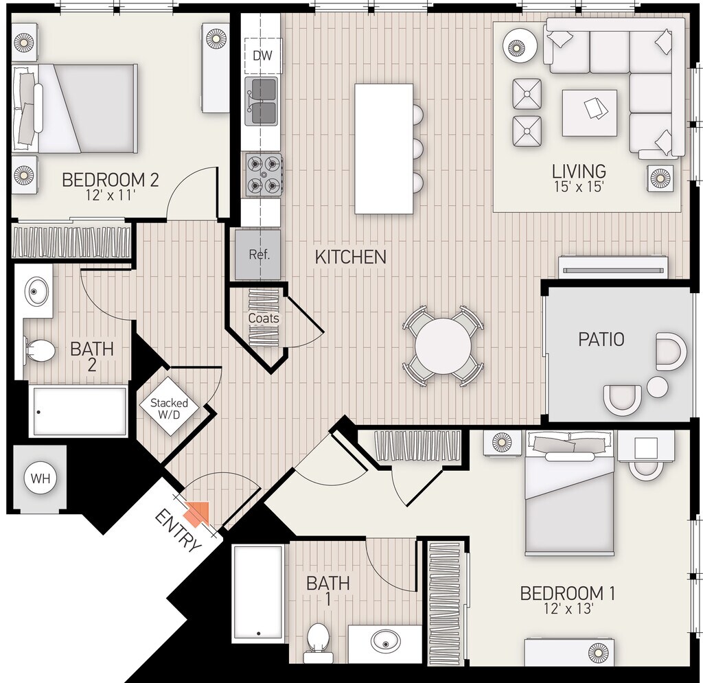 Apartment Model: Plan FFrom $2,7751 Bedroom, 1 Bath, 778 sq ftAvailable Now![]()