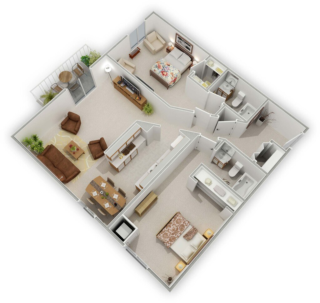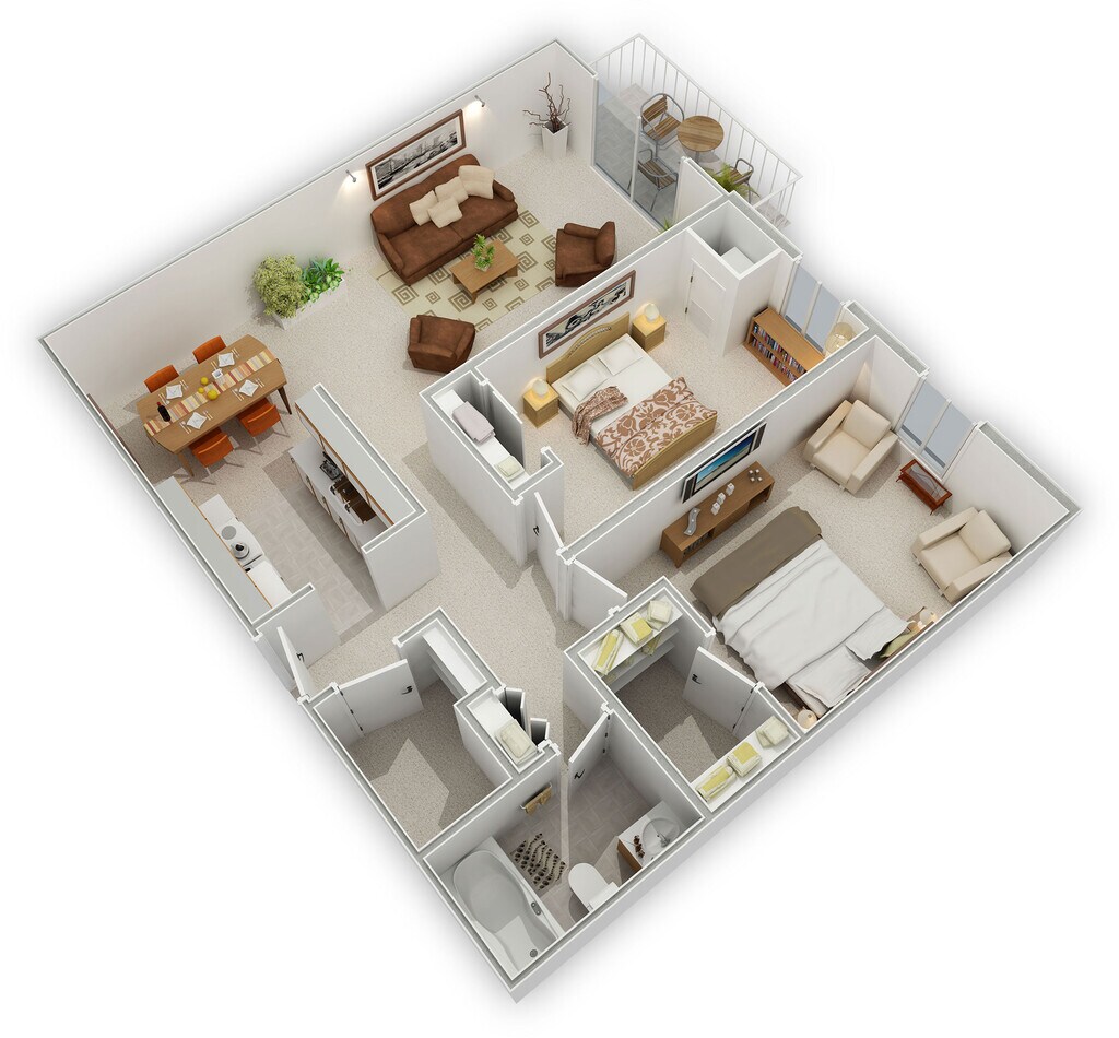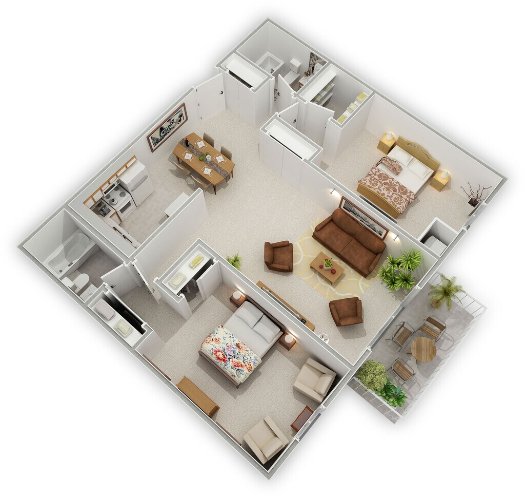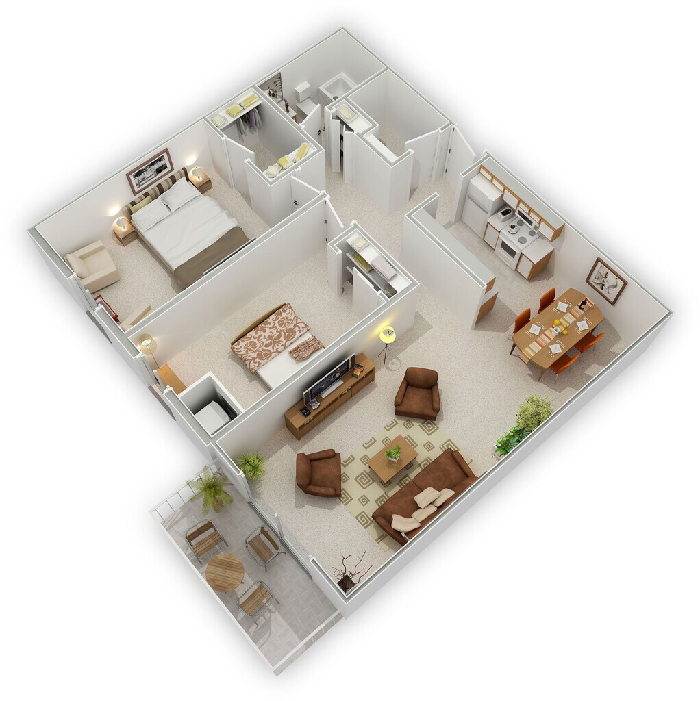 2 Beds, 1 Bath, 986 sq ftPlus FeesAvailable NowModel Gallery