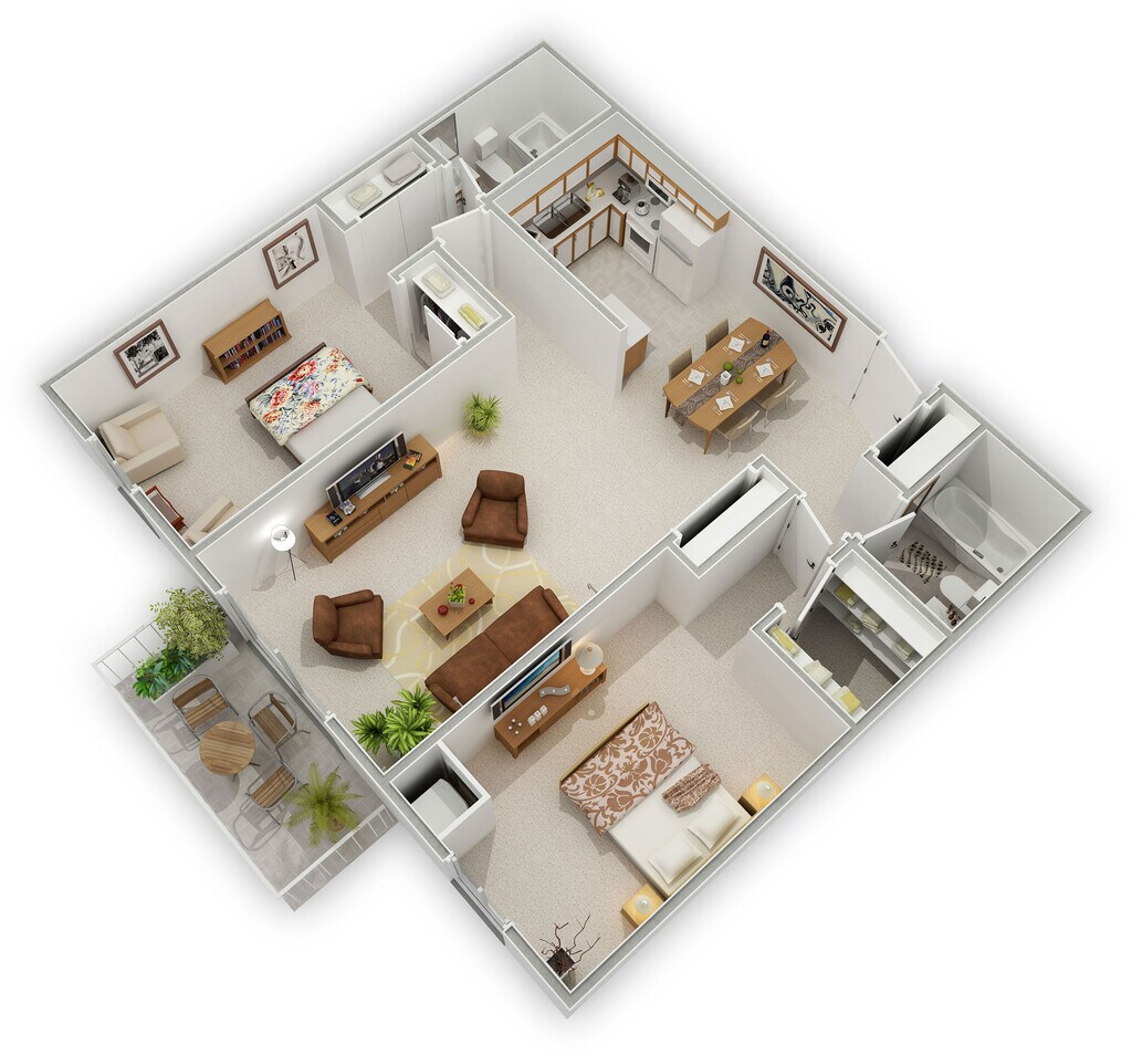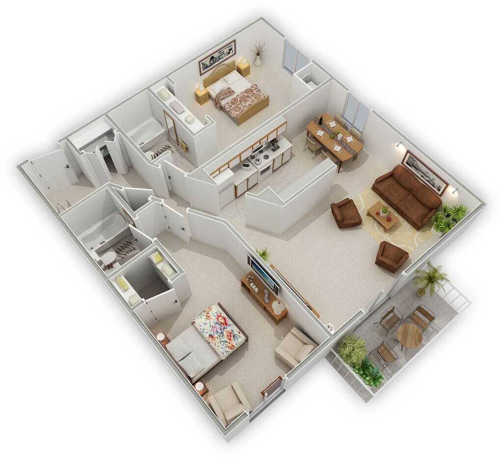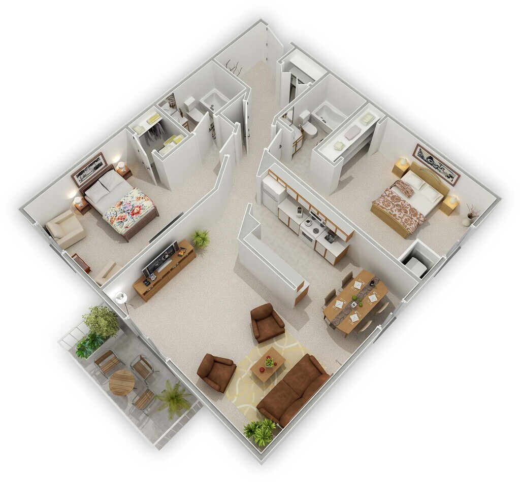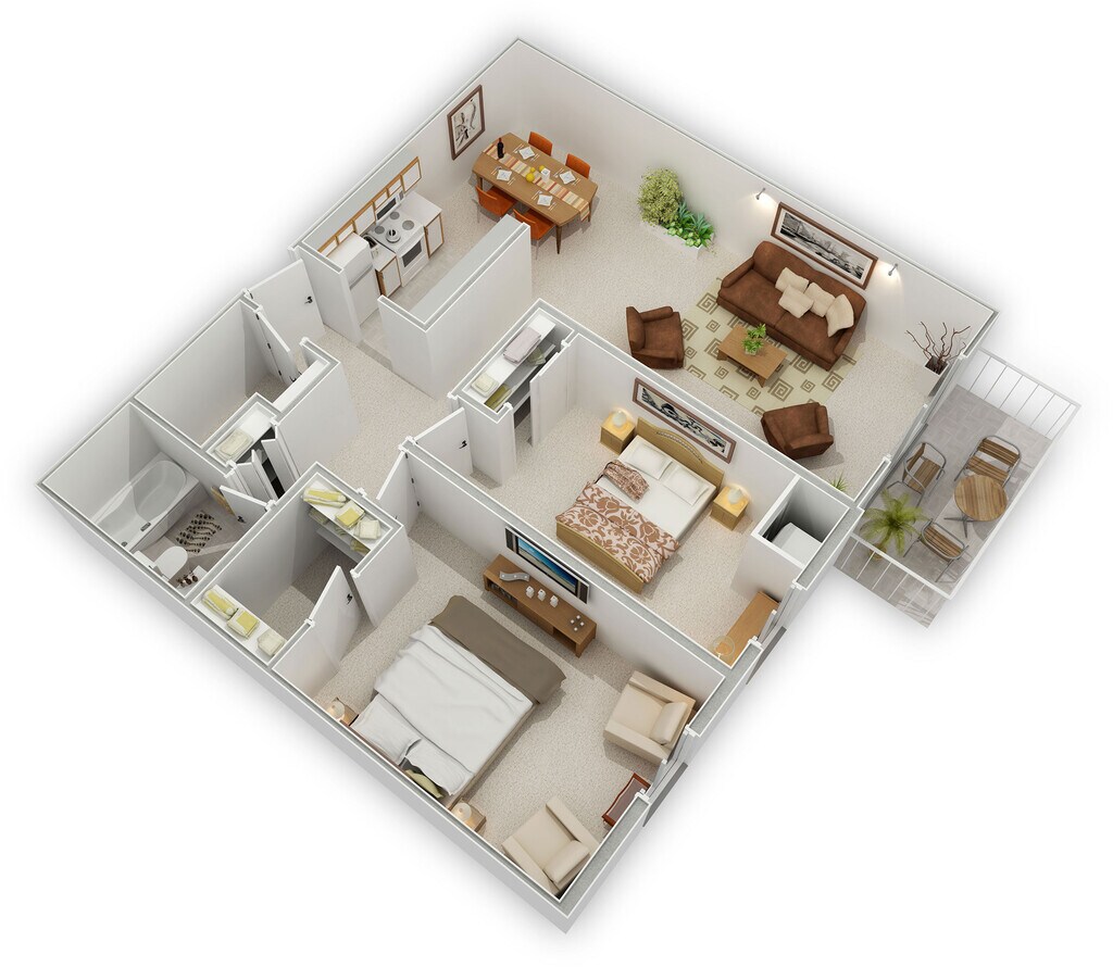 2 Beds, 1 Bath, 986 sq ftPlus FeesAvailable NowModel Gallery