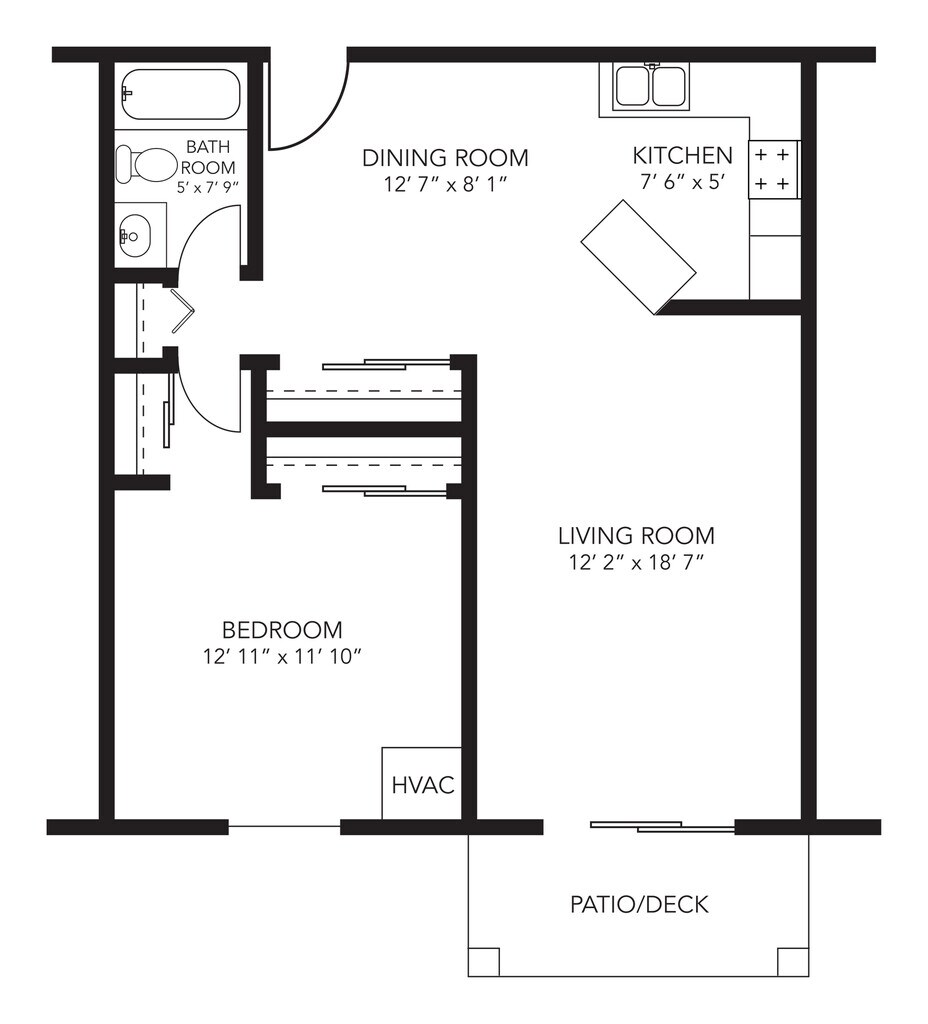 2 Bedroom 1 Bathroom Alcove - Floorplan 2 ![]()