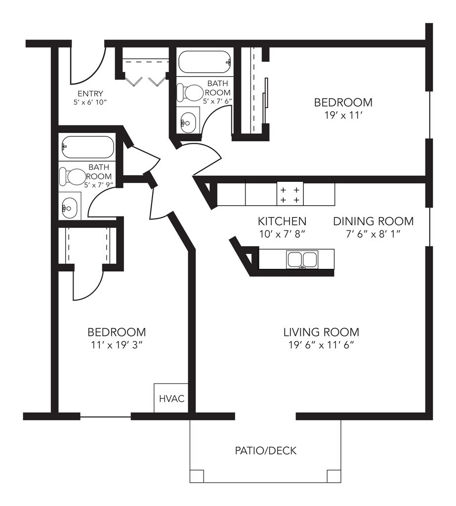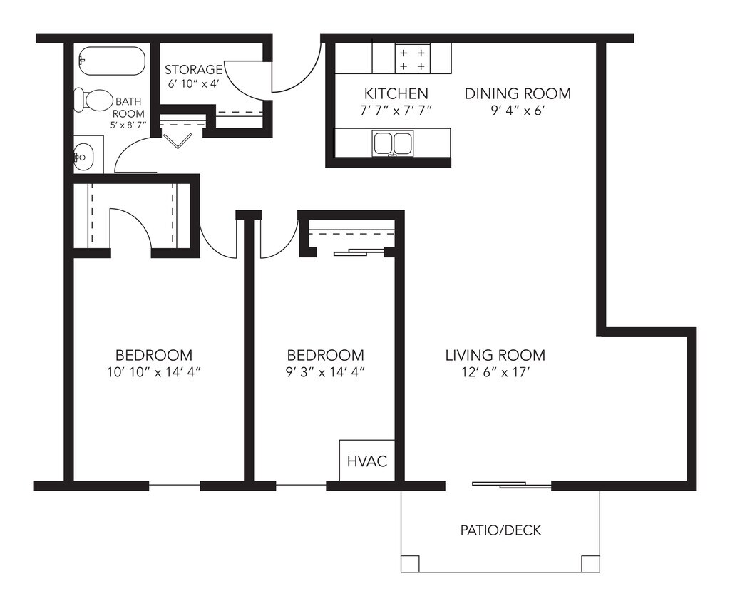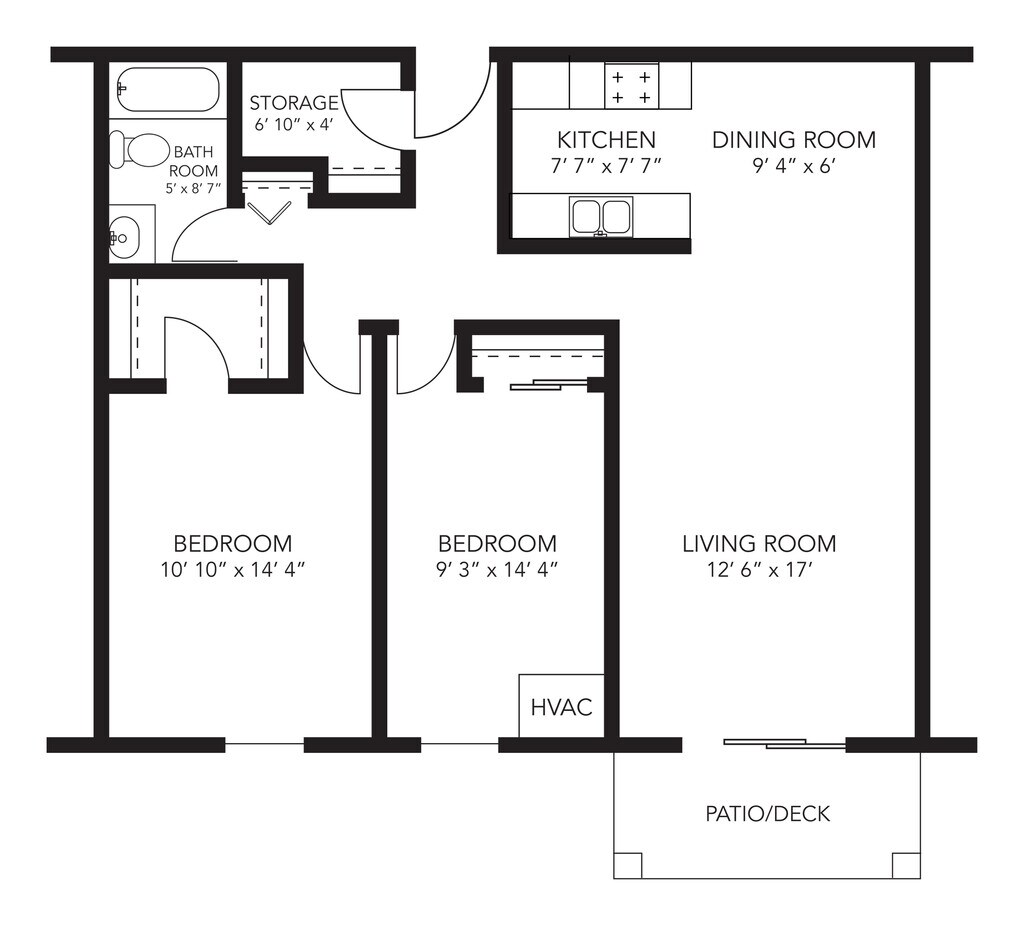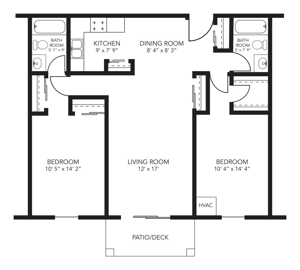 2 Bedroom 1 Bathroom Alcove - Floorplan 4 ![]()